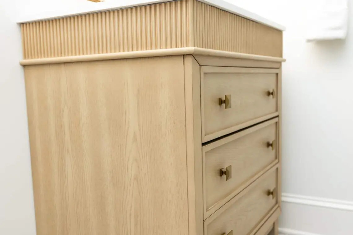 • A mattress cover, bedding and extra blanket are stored in the dresser.
